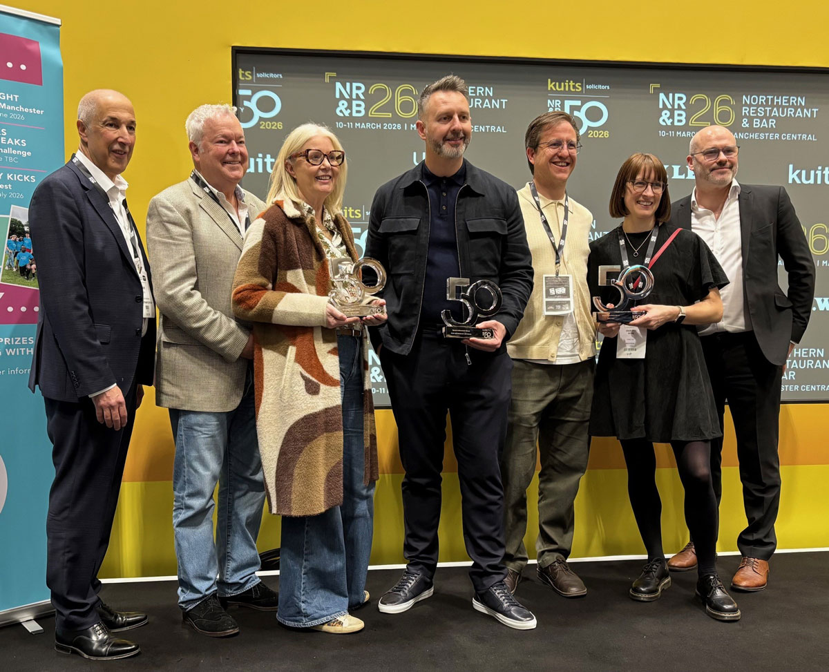 On Tuesday 10th March our owners Tim and Mary headed off into Manchester to the Northern Restaurant and Bar Show (NRB). Tim was a keynote panellist at the event, talking about the success of ‘No and Low’ alcoholic drinks within Cheshire Cat. Then later in the day our company was recognised for the 10th time in a row in the Kuits/NRB Top 50 Northern Hospitality businesses. But there was a surprise in store as our company was also awarded one of the prestigious ‘NRB High Achievement Awards’ for 2026 recognising our team’s efforts over the years. Three awards are presented on the day and Mark Birtshall the 3 Michelin star head chef of Moor Hall and the team behind Nell’s Pizzas in Manchester both sharing the stage with Tim and Mary.